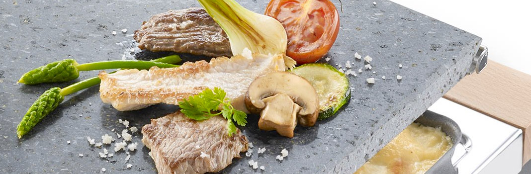 Il suffit pour démarrer l’appareil d’appuyer sur le bouton ON de l’interrupteur. En quelques secondes la plaque et les poêlons sont chauds, prêts à recevoir vos mets. Un bac récupérateur placé sous la pierrade, centralise le jus de cuisson. Une utilisation simplissime, comme l’est le nettoyage de ce produit. Des poêlons permettent d’utiliser la force de chauffe pour servir d’appareil à raclette (10 coupelles incluses).