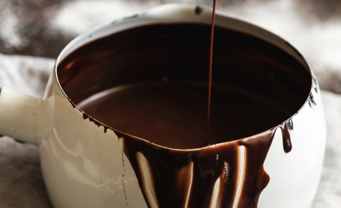 - Remuez doucement avec une cuillère en bois pour faire fondre le chocolat ;